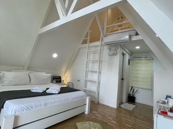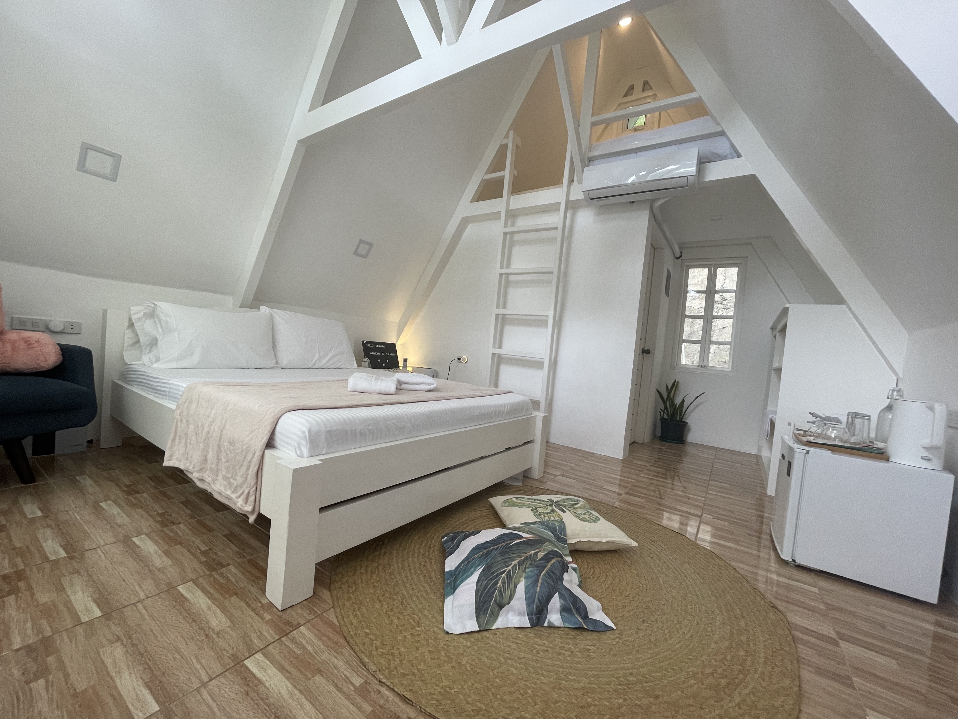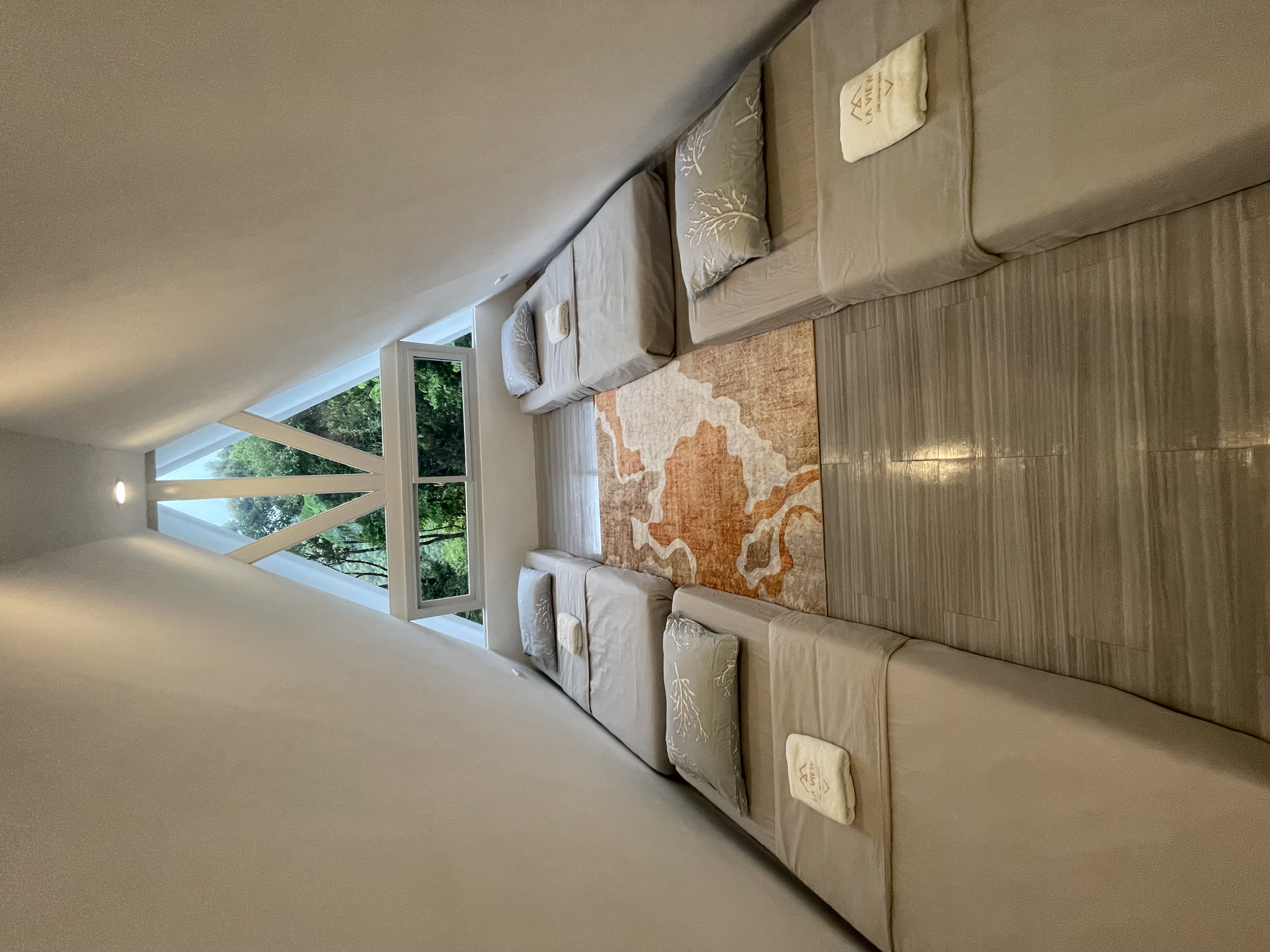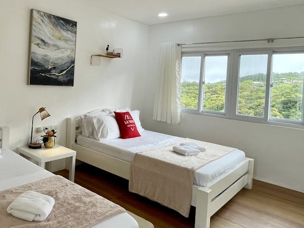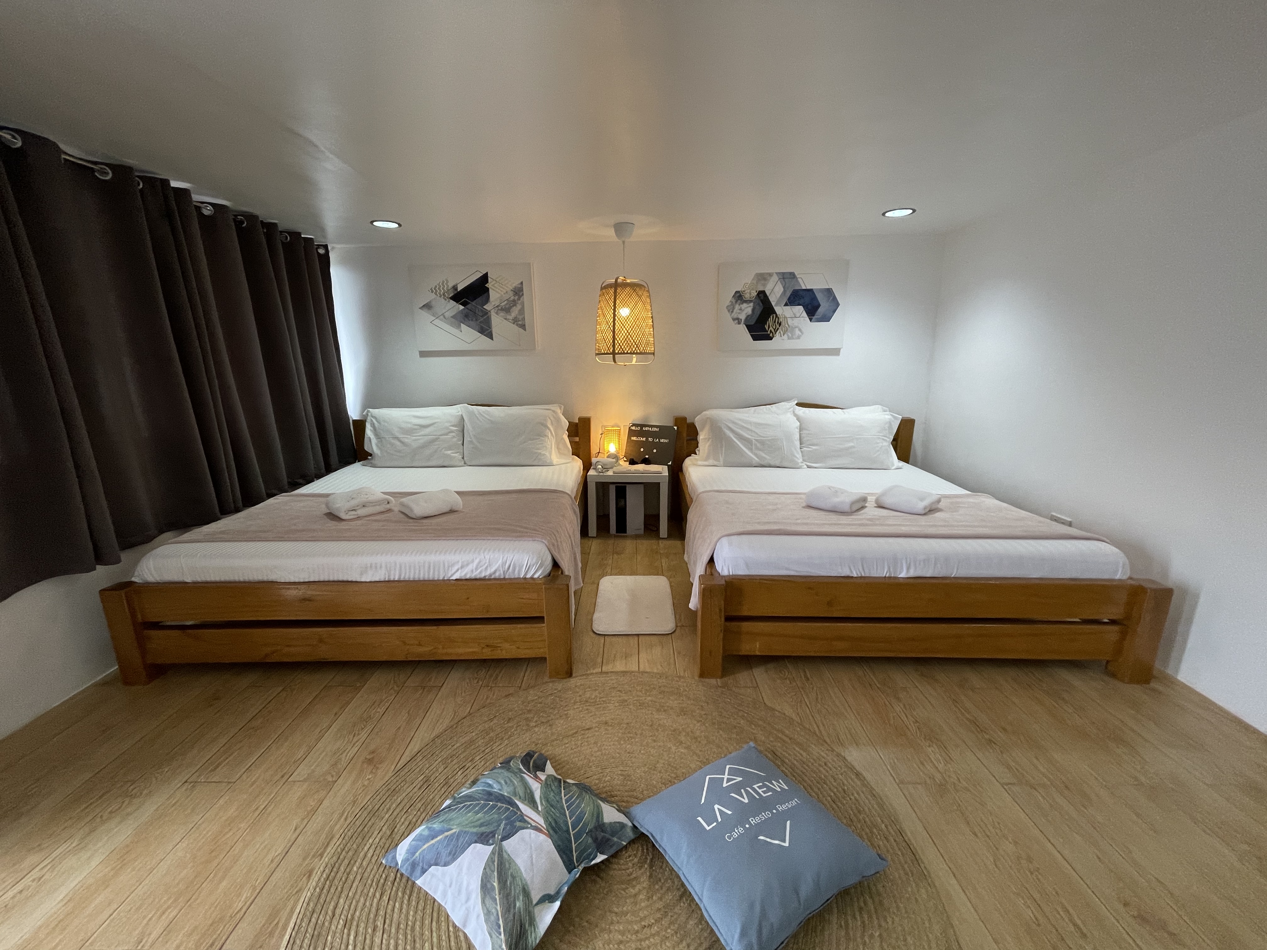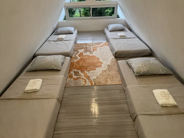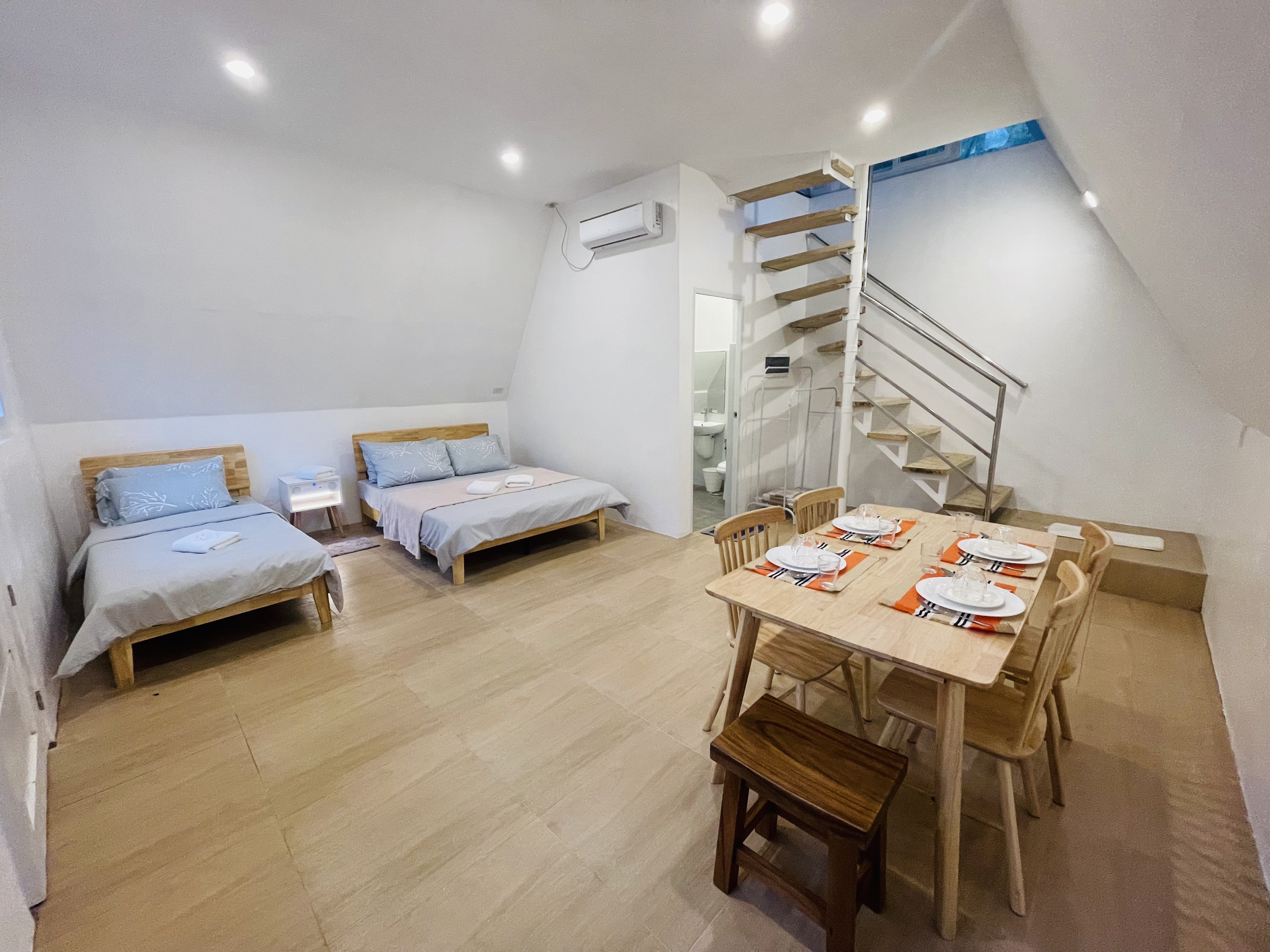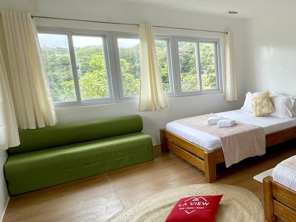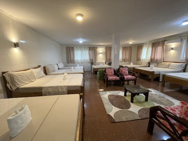 1 Queen size bed and 5 Single beds. 1 toilet & bath, and dining area. Private balcony